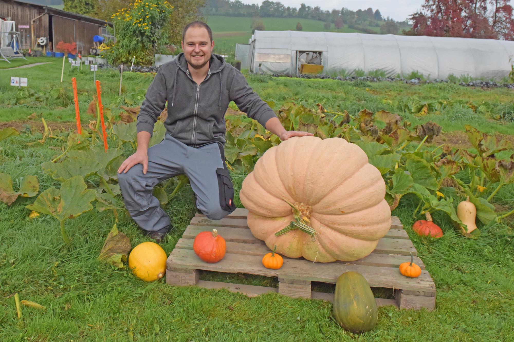 Ernteglück 95 Kilogramm wiegt der orange Koloss, gezüchtet von Silvan Geisseler auf dem Landwirtschaftsbetrieb Gattwil,