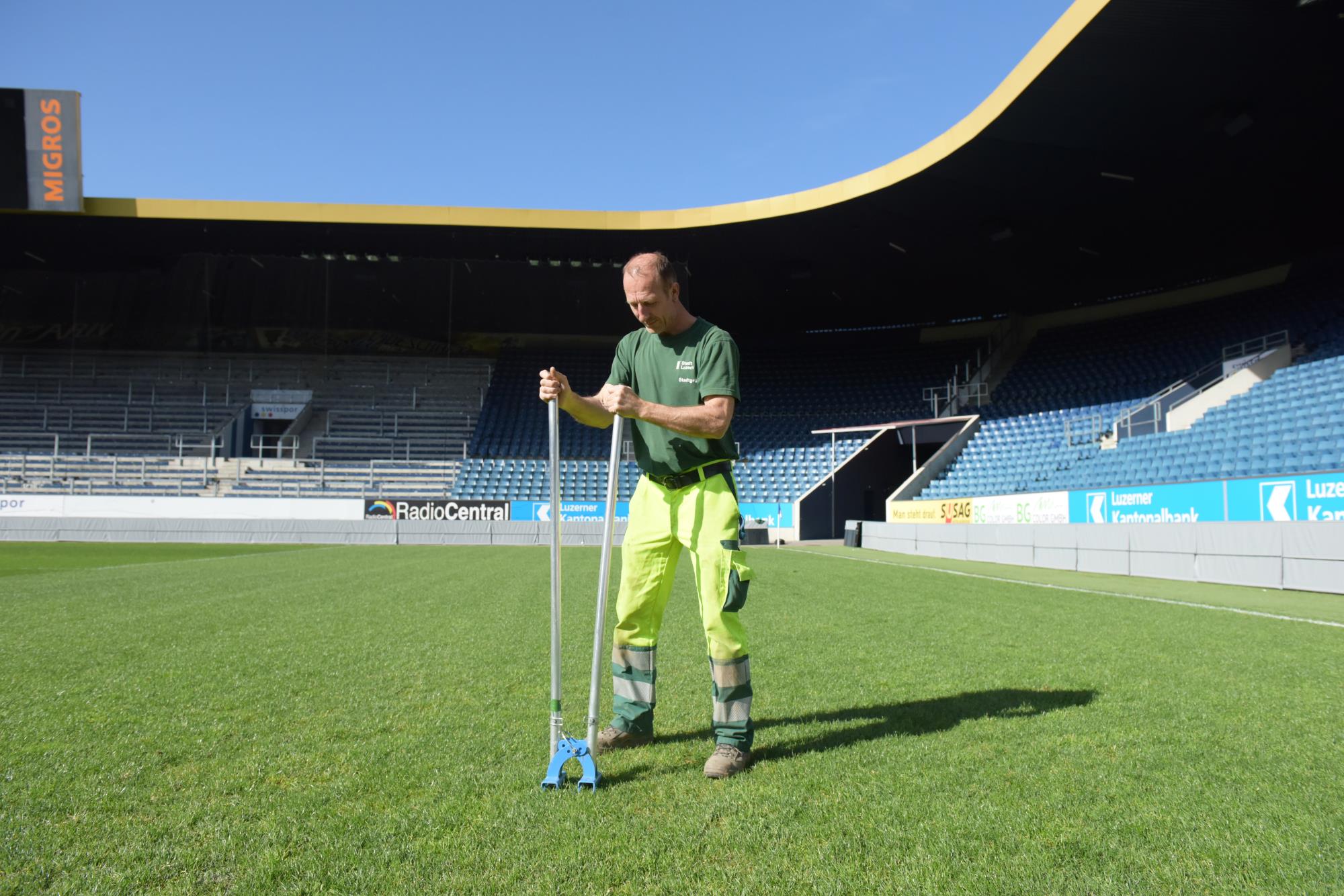 RENDEZVOUS Benno Lang erlebt bei seiner täglichen Arbeit so einiges im Fussballstadion des FC Luzerns. Krähen verstecken ihr Futter unter dem Rasen, aus dem Stadion musste er auch schon einen ...