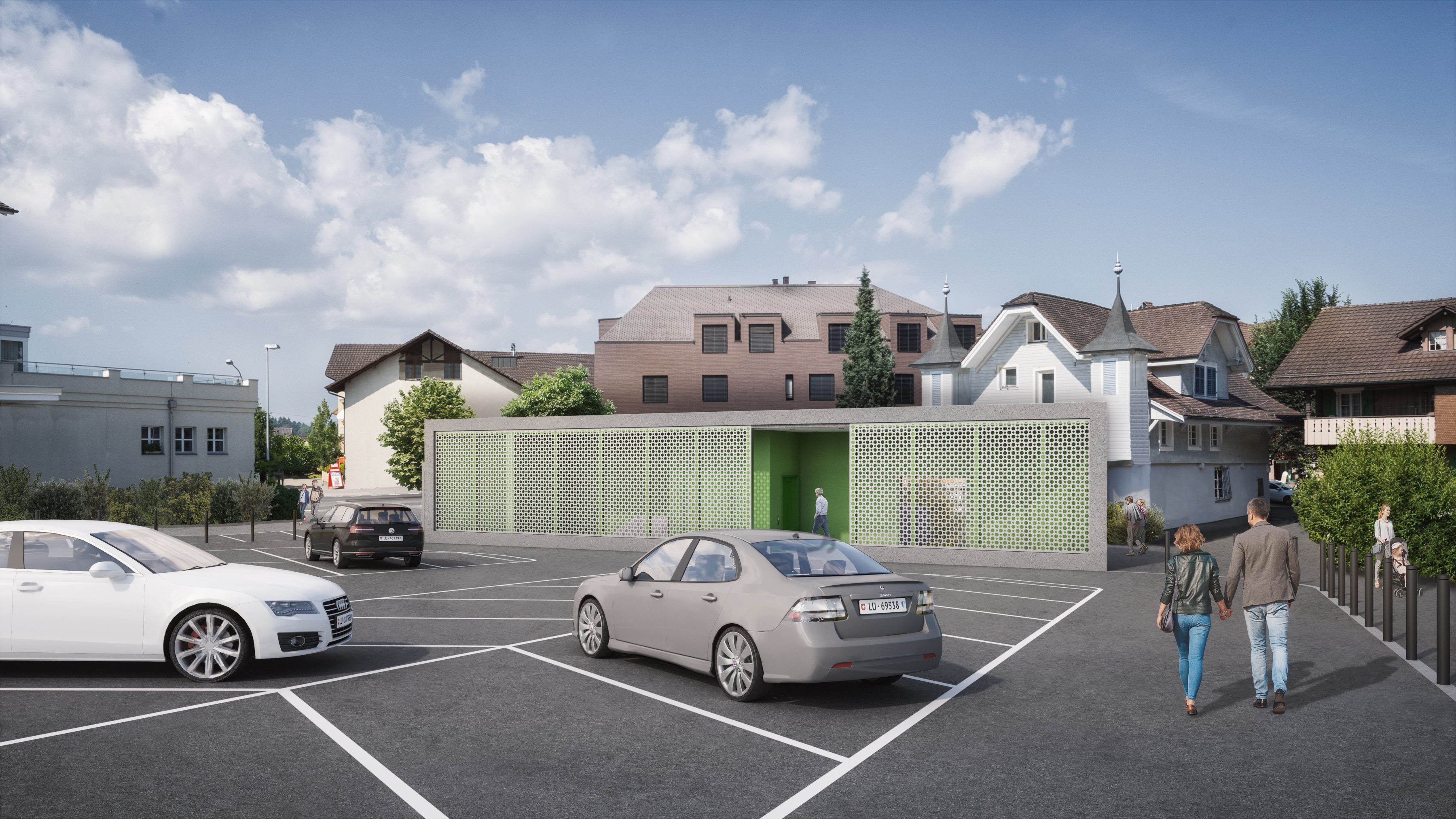 Parkhaus Der Ausbau des Parkhauses Märtplatz ist weit fortgeschritten, die neuen Hochbauten sind unter Dach. Wann wird das neue Dorfzentrum eröffnet?