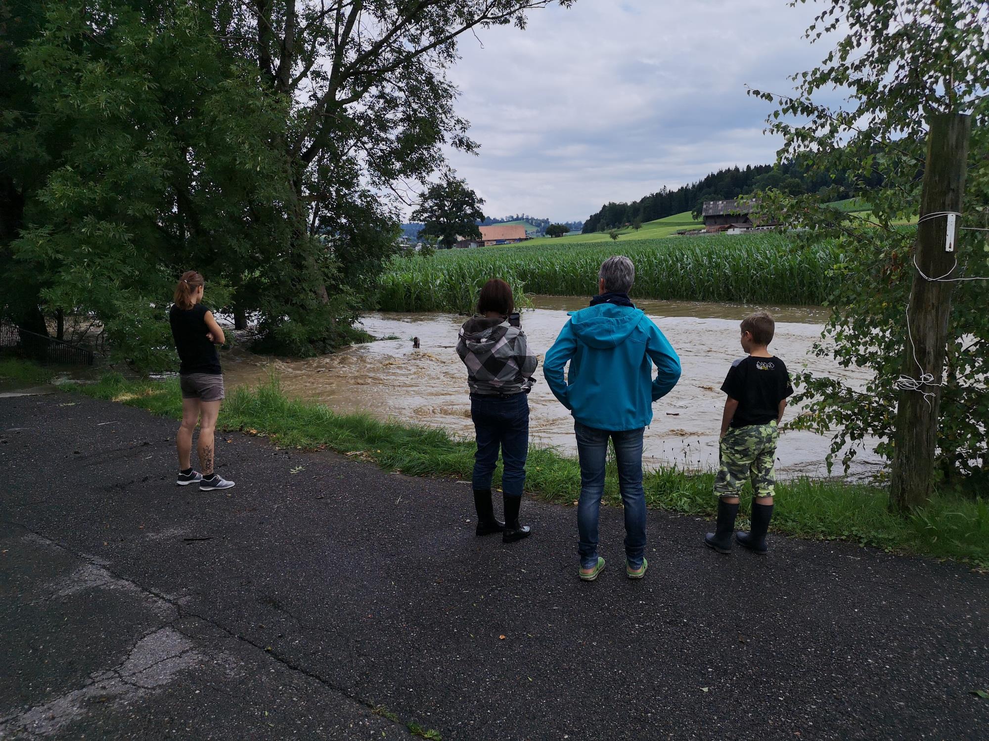 Der Bielbach überflutete die Felder im Windbüelfeld. Foto Erwin Ottiger