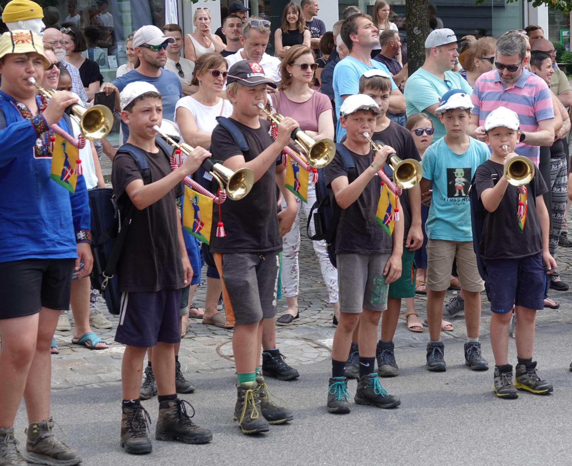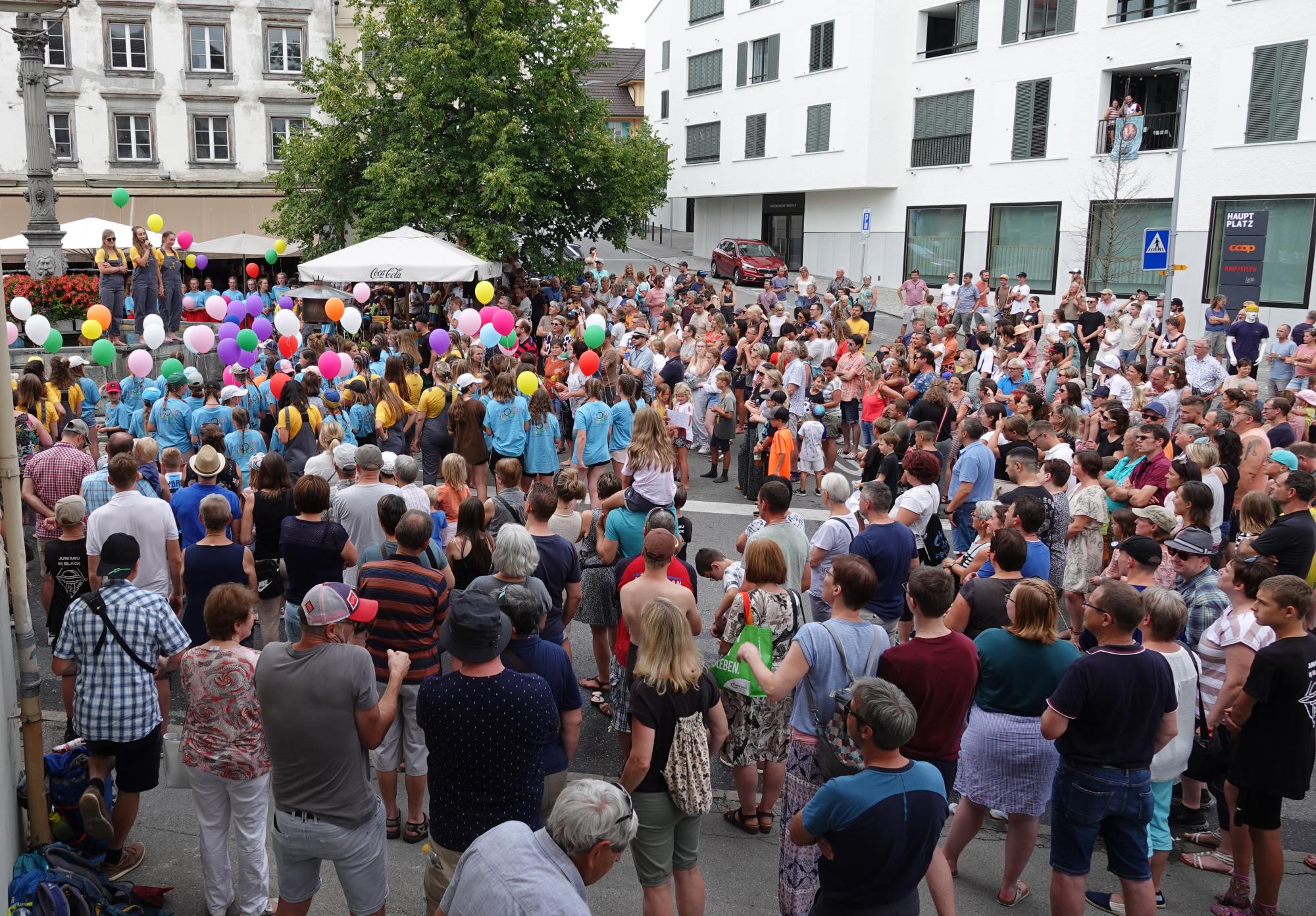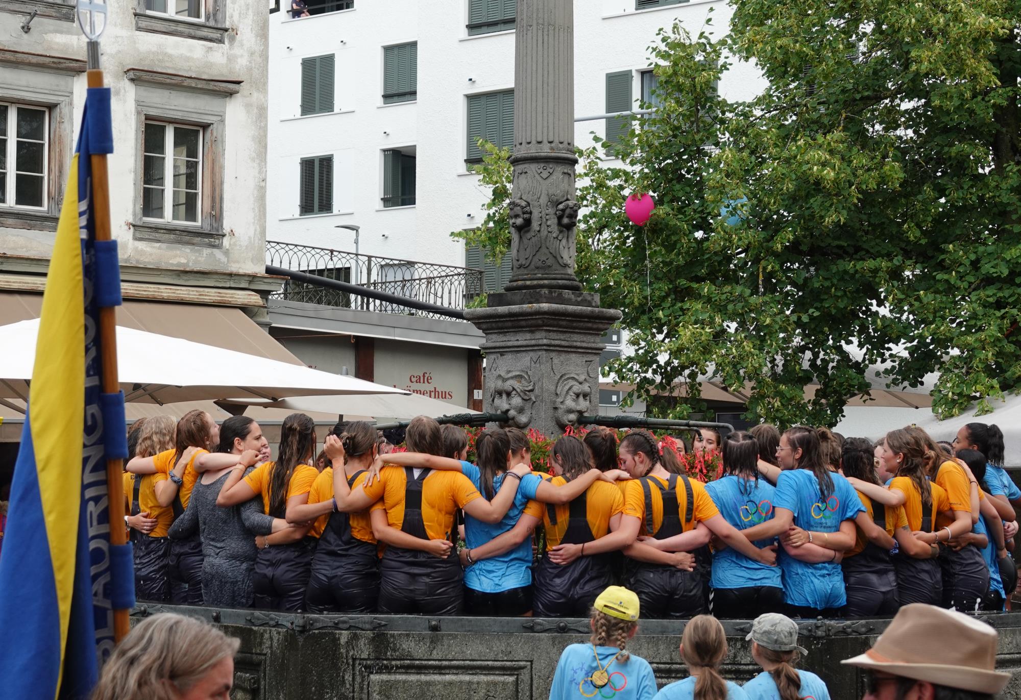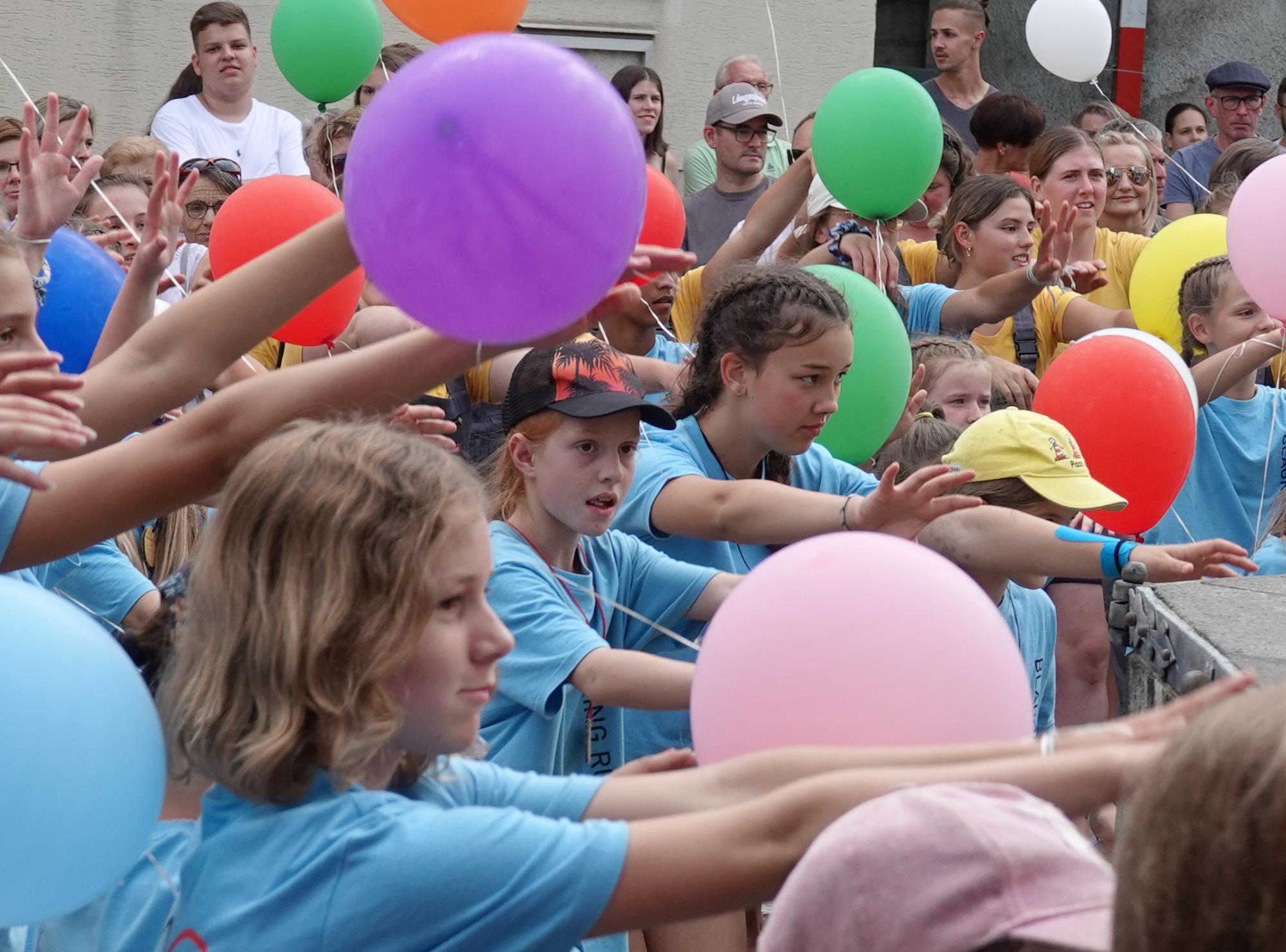 Blauring und Jungwacht Ruswil kehrten von ihren Lagern zurück und zogen unter grossem Publikumsaufmarsch ins Dorf ein. Nach der Begrüssung stand die obligate Wasserschlacht im Dorfbrunnen auf dem Programm. Fotos Roland Meyer