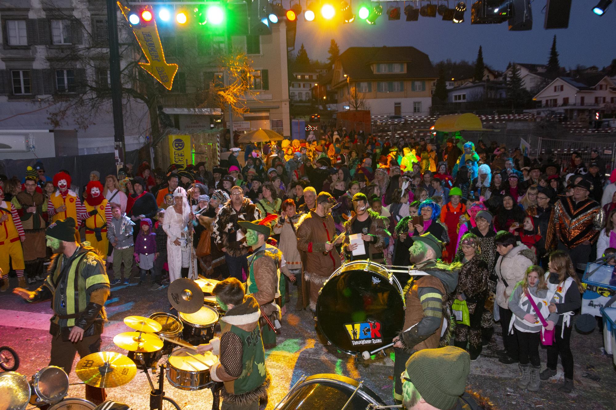 Die 20. Explo lockte sehr viel Volk in den Ruswiler Dorfkern. Neben einem breiten kulinarischen Angebot hatten auch die 14 Guggenmusiken am Monsterkonzert ihren grossen Auftritt. Fotos Erwin Ottiger