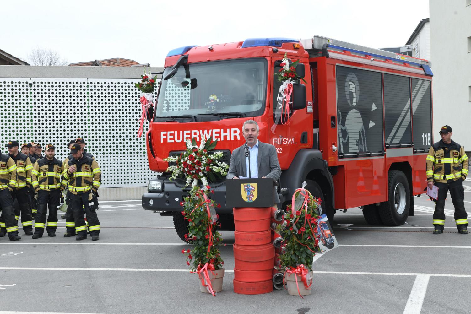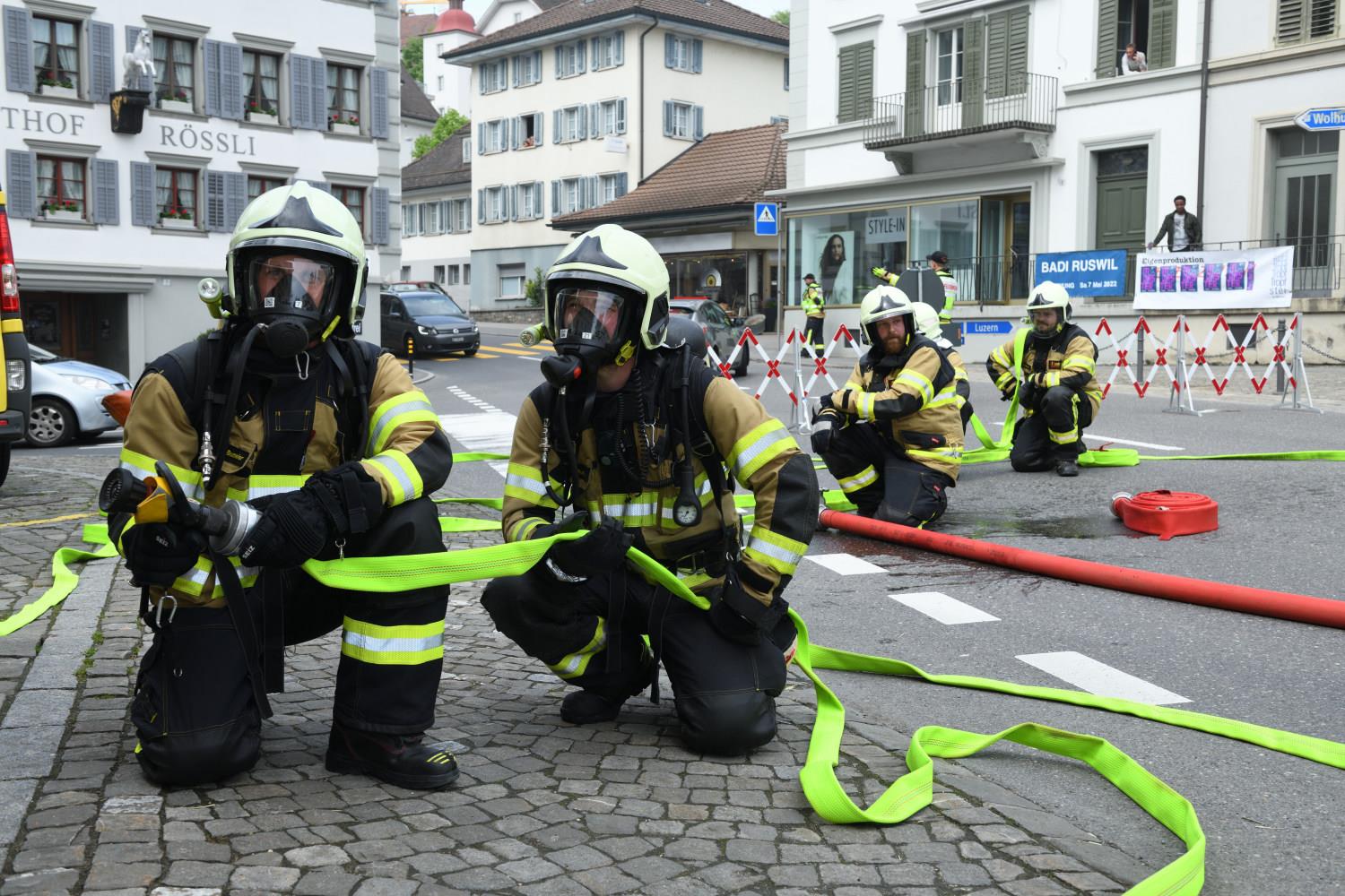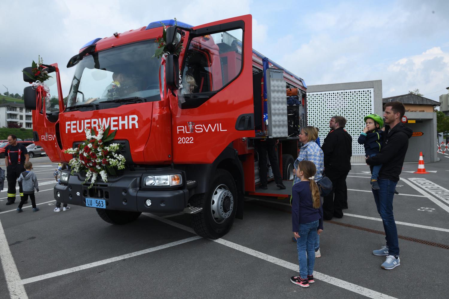 Am 7. Mai weihte die Feuerwehr Ruswil ihr neues Tanklöschfahrzeug (TLF) ein. Rund 200 Personen nahmen an der Feier teil und liessen sich das neue Fahrzeug zeigen. Auch die Probeübung am Nachmittag mitten im Dorf sorgte für grosses Interesse. Die Feuerwehrkräfte demonstrierten Rettungs- und Löscharbeiten. Fotos Stefan Dubach