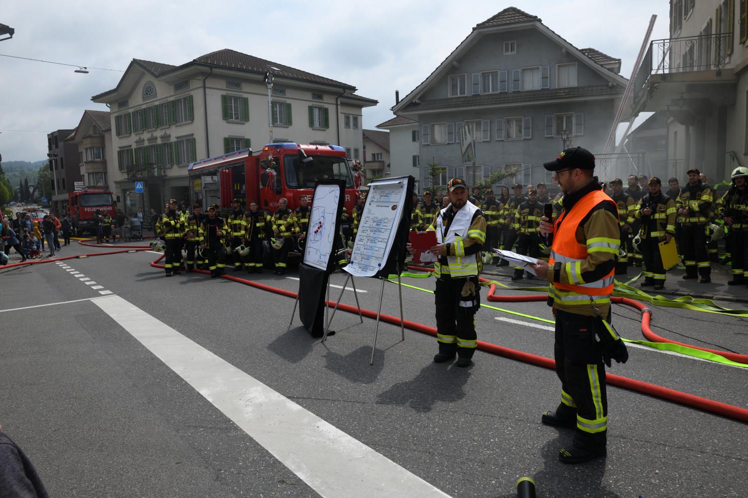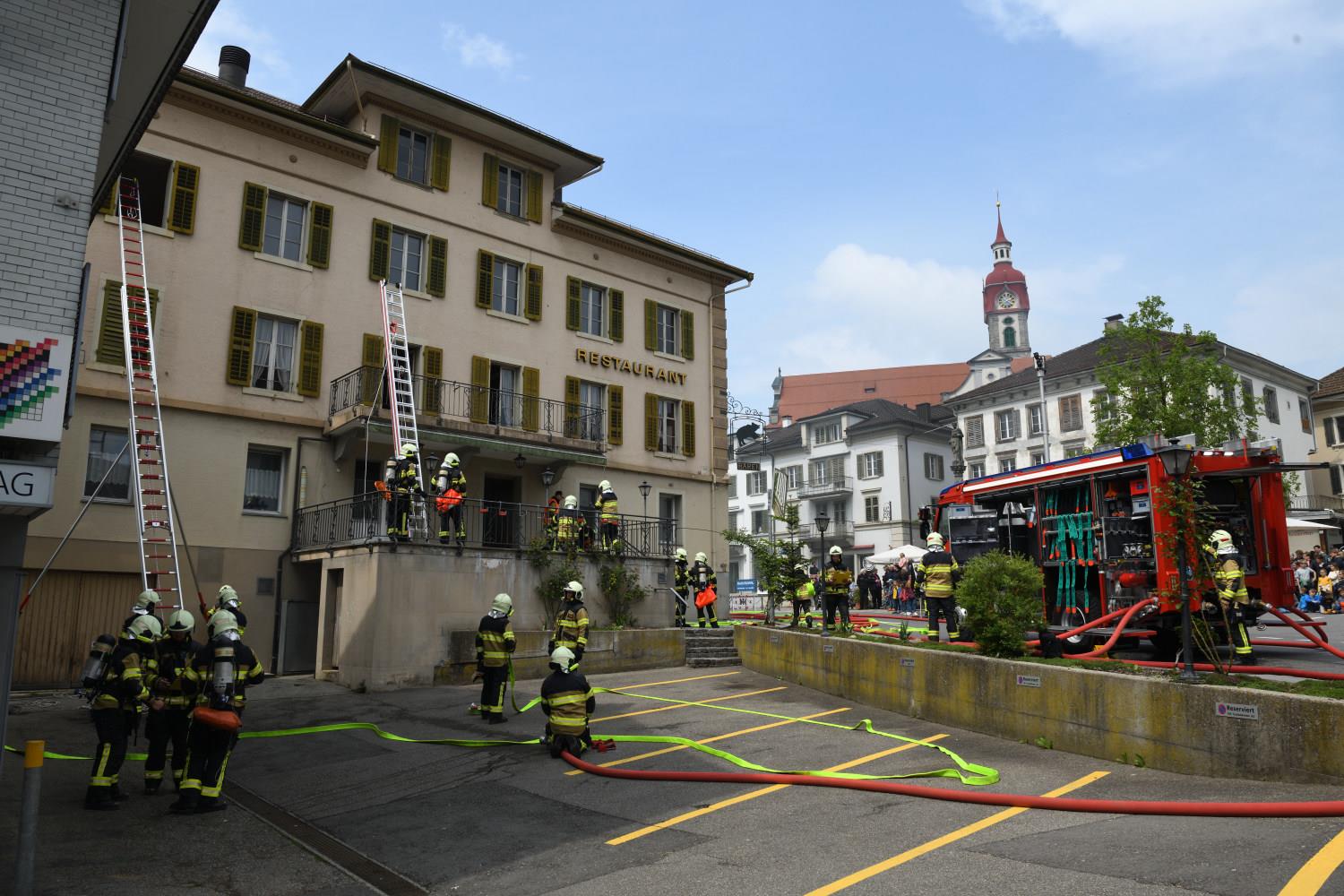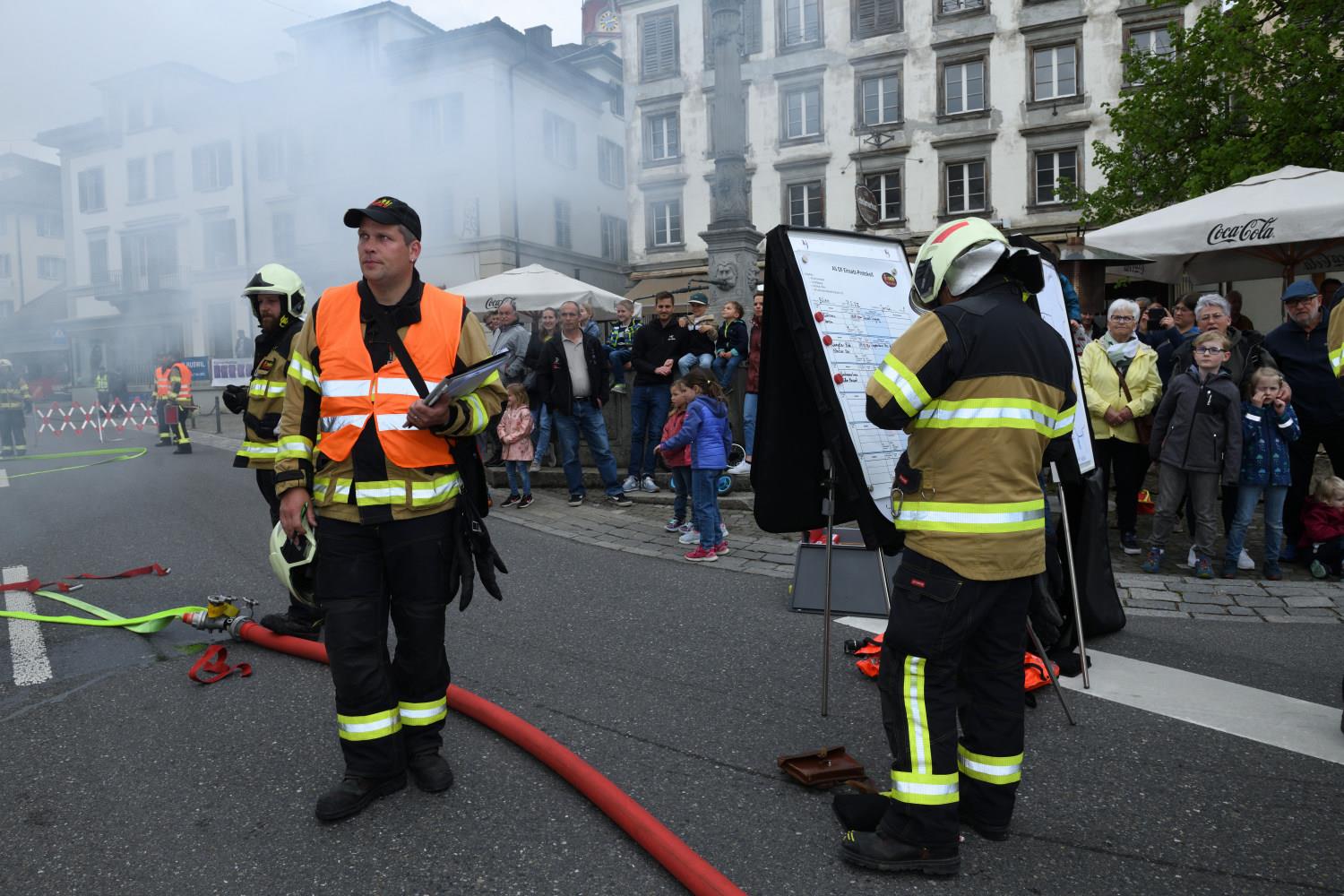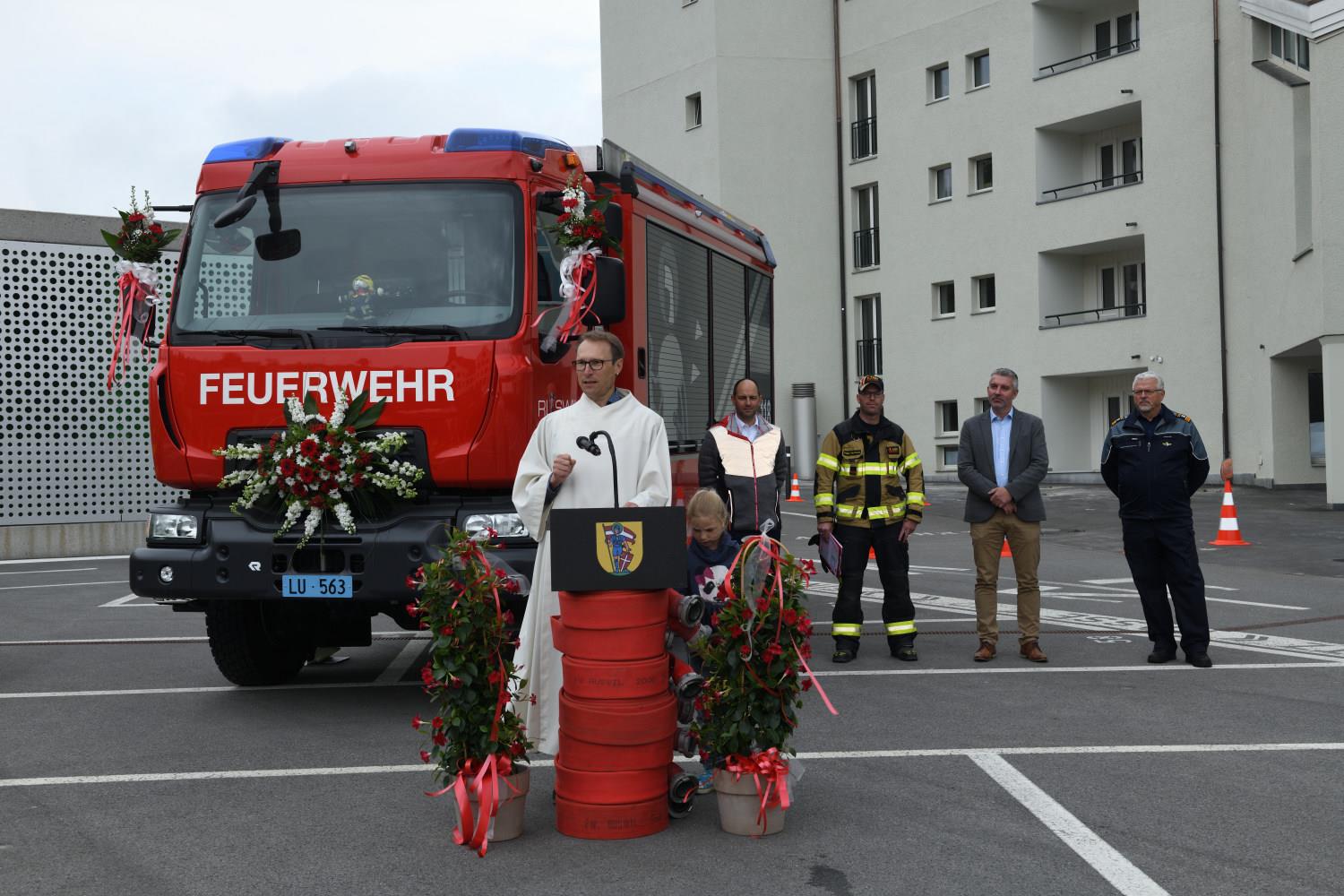 Am 7. Mai weihte die Feuerwehr Ruswil ihr neues Tanklöschfahrzeug (TLF) ein. Rund 200 Personen nahmen an der Feier teil und liessen sich das neue Fahrzeug zeigen. Auch die Probeübung am Nachmittag mitten im Dorf sorgte für grosses Interesse. Die Feuerwehrkräfte demonstrierten Rettungs- und Löscharbeiten. Fotos Stefan Dubach
