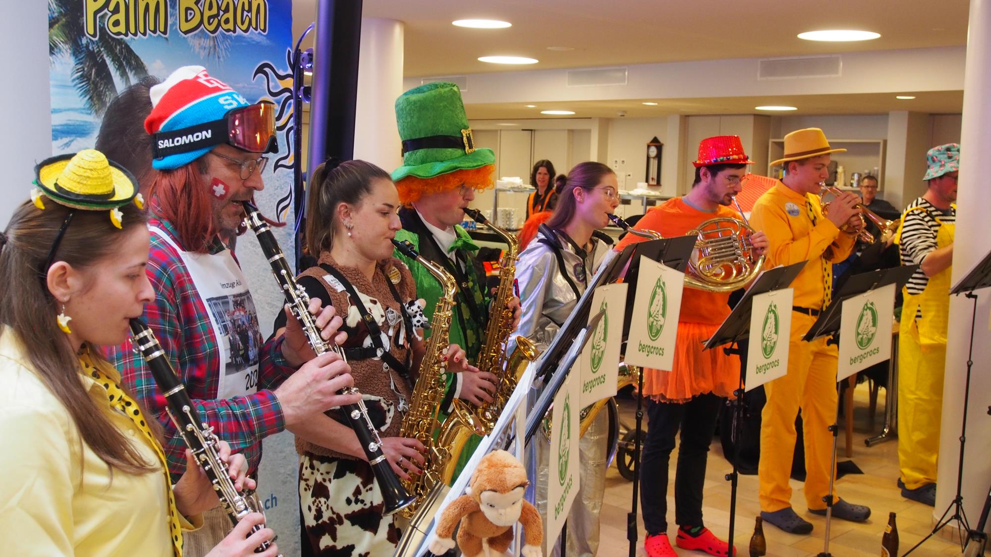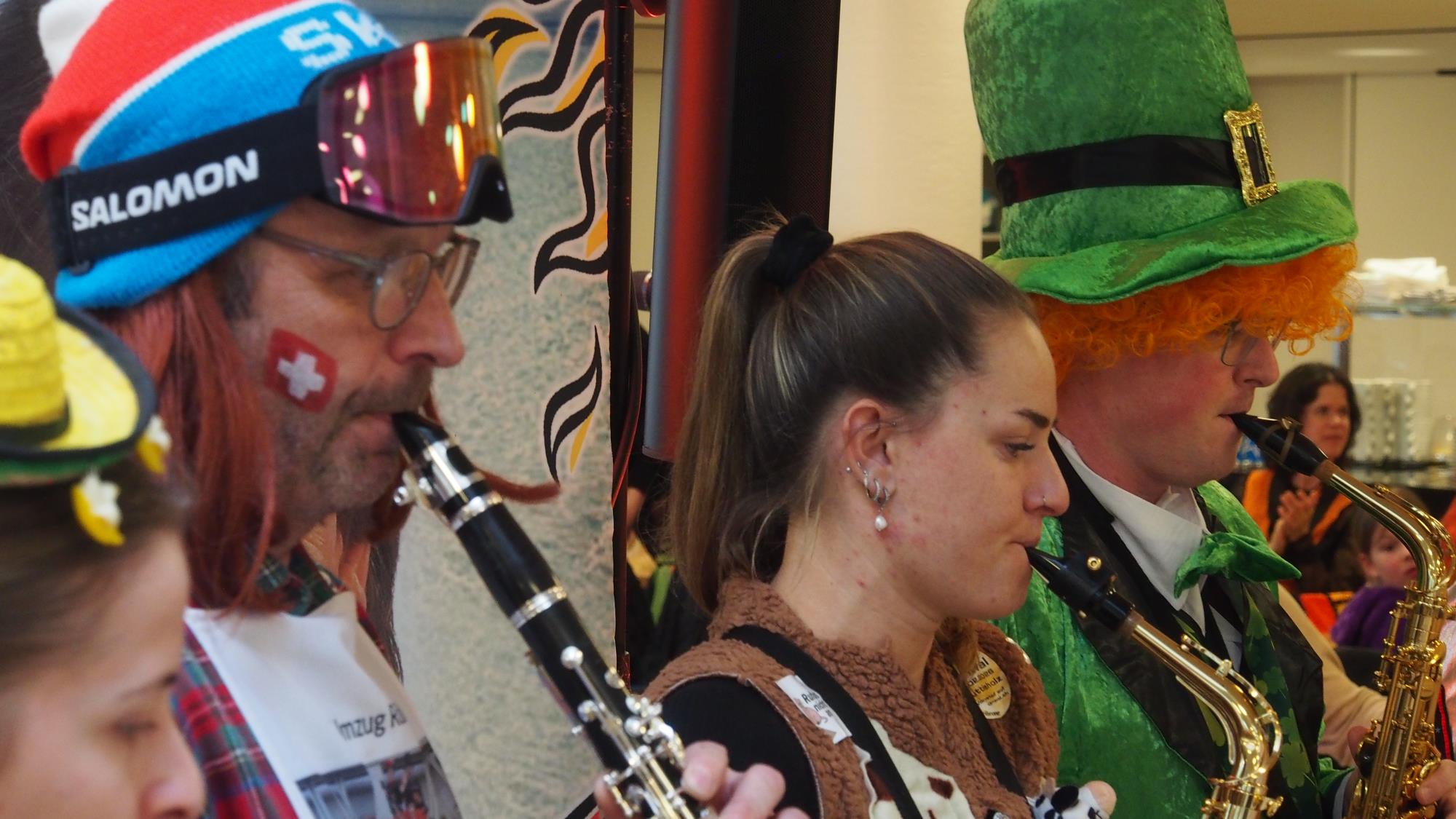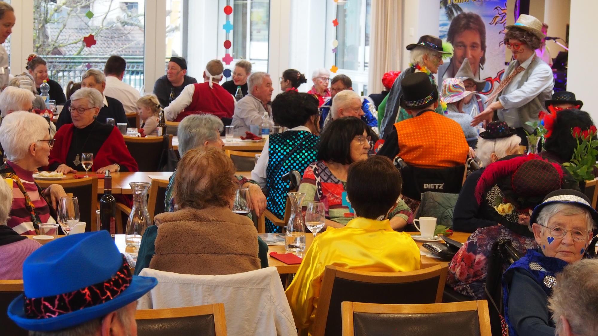 Die Auftritte von Zieberlizunft, Rottalschränzer und weiteren Gruppen und Einzelmasken sorgten am vergangenen Samstagnachmittag im Alterswohnheim Schlossmatte für Unterhaltung und Abwechslung am laufenden Band. Den Höhepunkt bildete der Besuch des Zunftmeisterpaares Thomas und Eveline Schurtenberger. Fotos Dieter Hodel